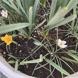 クロッカスが咲いてくれました😊 去年掘り起こして植替えた3年生❣️ 今のところ白優勢❗️(笑) この球根はクリームビューティーという黄色の球根だったのですが、咲いたらミックスでした(笑) この植木鉢には他に、遅咲き香り水仙と原種チューリップが咲きます❣️ 既に芽吹いているので早くお花が咲いてくれないかな〜。どちらも黄色のお花なので、幸せの黄色い植木鉢と名付けてます😊 最近バタバタで💦なかなか投稿できなくてすみません🙇