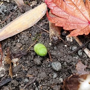 羽団扇楓(ハウチワカエデ)の枯れ葉を取り除こうとしたら もう宝鐸草(ホウチャクソウ)の芽が出ていました。 寒そうなので枯れ葉をもう一度掛けておきました。