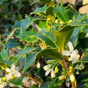 日本柊が咲いていました。 香りは鼻を近付けてもわかりませんが、小さい花が可愛い😉 花が開き切らない姿と 蕊を突き出す姿 どちらも可愛い💕