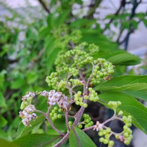 コムラサキが 一部花を残しながら 実が大きくなっていました。 秋に向けて準備中です💜💜💜