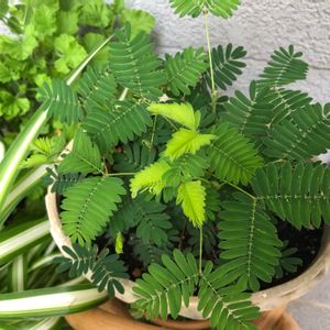今日のお花 オジギソウ 懐かしい気持ちになり購入して、玄関脇に置き、毎日触って楽しんでいます😊 訪問客の目にもとまるからか、皆さん触って喜んでいます😊