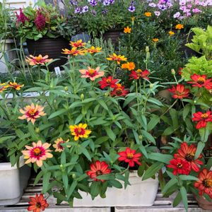 毎年6月に親友への弔い込めて植えるジニア(百日草)が猛暑にも負けず満開❣️😊 今年は黄色や赤といったポップな色合いにしたのが良かったのか色褪せもしてない。 この色合いは、ショートカットが似合う細身のお洒落な女子大生時代の彼女と重なる😔 ジニアの花言葉は「不在の友を想う」。 お昼頃から雷雨⛈️36度続きだったので、ちょっとホッとしました。