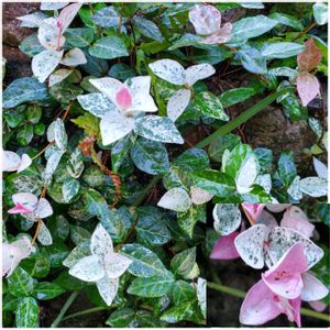 初雪葛がまるで白やピンクの花を咲かせているようです。 このGS を始めた頃 岩の隙間から 細々と生えてきたのが この暑さにもかかわらず 元気に大きく広がっています。