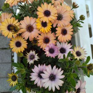 オステオスペルマム グランドキャニオン🌼 イエローとクリーム色だったオステオからどちらからもピンクが混ざって出てきた😳💖