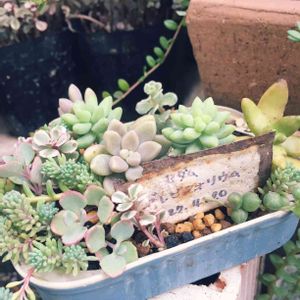 【おばあちゃんのお庭】 となりのおばあちゃん 私がちょこちょこお裾分けした多肉ちゃん めっちゃモリモリ育ててくれてる🤗✨ 私が作ってる寄せ植え見て 一生懸命真似して作ったやつを嬉しそうに見せてくれるんだよー♪ふふふ、可愛い😁 リメ缶も『ツナ缶だよ』って教えてあげると、色んな食べ物の容器で多肉ちゃん植えて『こんなんに植えてるねん』って恥ずかしそうに話してくれる*\(^o^)/* そんなおばあちゃんに癒されてまーす٩( ΄◞ิ౪◟ิ‵ )۶΄◞ิ౪◟ิ‵٩( ΄◞ิ౪◟ิ‵ )۶