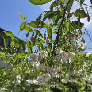 『エゴノキ』 マンションの中庭にある木🌳 たぶん、エゴノキだと思われます😊 2枚目に写ってる大きな蜂🐝🐝が 2匹程ブンブン飛び回っていて、 もっとアップで撮りたかったけど、 怖くて、これ以上近づいては撮れませんでした💦