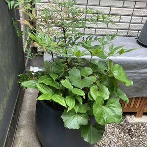 観葉植物の寄せ植え スパティフィラムをメインに、ベニシダやアメリカヅタなどでとても涼しげな仕上がりになりました。
