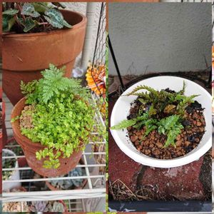 シダとベビーティアーズ ベニシダ一緒に植えてたんですけど乾燥気味の管理にどうにもこうにも調子が悪いので別住居にお引っ越し。 プラ鉢だから湿度も保てるでしょう。きっと。 回復して大きくなったらベニシダも庭の日陰に地植えしたいな。 その日陰の庭エリアは今ヒッツキムシノ枯れ枝で鬱蒼としてます…。 チクチクするしあまりに足を踏み入れたく無いですが…。 頑張れ庭作り💪ですな❗ 折角庭あるんだから活用せねば‼️