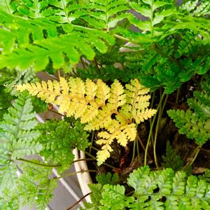 常盤忍と紅羊歯。うちのトキワシノブに稀に出てくる黄葉。通常のシノブの落葉前とは違い、これで新葉です。ベニシダの新葉があれば赤黄緑と3色揃って良かったのですが。ちなみにベニシダはかなり以前に自分で初めて採取したもの。カナワラビの自生地だったのですが判別出来ませんでした。