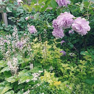ニューウェーブとあまり違いがなく見えますがこちらはレイニーブルー🌹 種からたくさん育ちすぎて、かなり抜いたシレネガリカも咲き出したので、ちょっと遠いけど一緒にパチリ📸 なかなかバラと一緒に花を育てるのが難しい。バラよりモリモリ育ちすぎて、埋もれているものがちらほら😆 特にラークスパーは大きなバラと合わせないとバラがどこに行ったか分からなくなりますね😱 まだまだ試行錯誤しないとな。