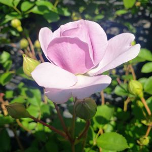 昨年購入のレイニーブルーが、咲き始めました☺️💕 右下のは1週間前の2番花で、他は今日の🤳です。 咲いてくれるだろう蕾が、数えたら25個有りました! 2週間前に1輪だけ!あっという間に咲いて🤳無し! まるで、『これからいっぱい咲きます。』と知らせるように☺️ 昨年秋にやはり黒星病になっていて、既に症状現れ葉が少ないです! 薔薇だけは頻繁に薬を使わねば、難しいですね❣️ 2番目の花が咲きそうな頃、4歳の孫息子が鉢の前に立って見てました☺️ 「これからいっぱい咲くよ。」声を掛け近付くと⁉️ 蕾ひとつを指でモミモミ😱 早く咲かせたかったとのこと😮😭