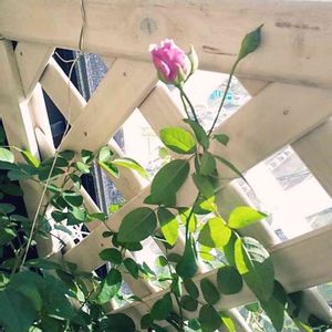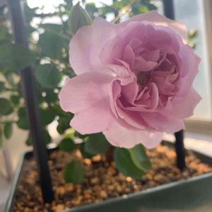 初めて栽培するバラ。上手く咲くかな。レイニーブルー。見えるのはピンク色だけどブルーにこれからなるのかしら?毎日がドキドキ
