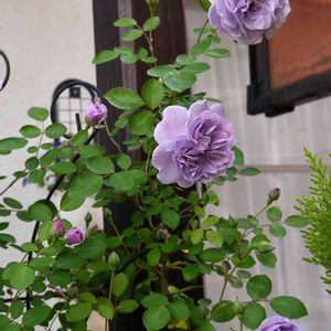 今日のバラ① 藤色のバラ、レイニーブルー。 鉢植えなのもあるのか、あまり大きくなってくれません💦 他所様ではたくさん咲いていてうらやましいです😣