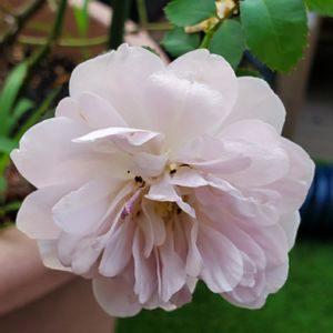 雨上がり。 初めてレイニーブルーが咲いてくれました🌹 大好きな色💟
