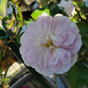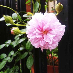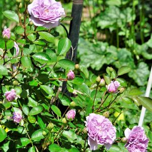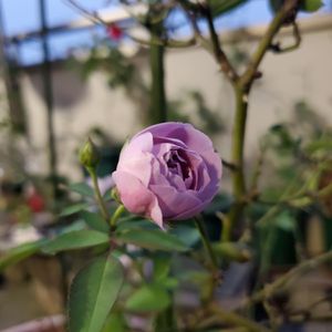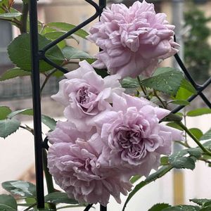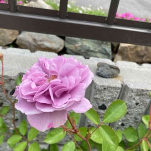 今朝のバラ⑩ つるバラのレイニーブルー。 透明感のある藤色がステキ😍 鉢植えでトレリス仕立てですが、もう少したくさん咲かせたいなぁ🤔