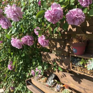 咲いた咲いたレイニーブルーさん🌹✨ 多肉さんとのコラボ✨ というかレイニーブルーさんがもはや主役の勢いです😌