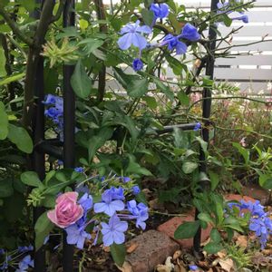 去年買った、ルリマツリが、零れ種で結構出てきました。 しかし日当たりがイマイチなせいか成長が遅く、今頃咲き始めです。バラのアーチの足元であちこちチラホラ咲いてくれてます。来年も零れ種で出てきてね!