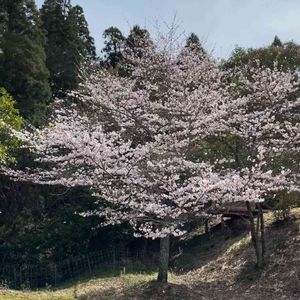 我が家の桜🌸🌸です。大きな木の脇から出てきた小さい木。ぐんぐん伸びて高く伸びました😃😊 小さいながらも一人前の桜🌸です 毎年お花🌸🌸も沢山付けて‼️