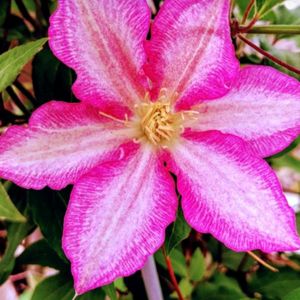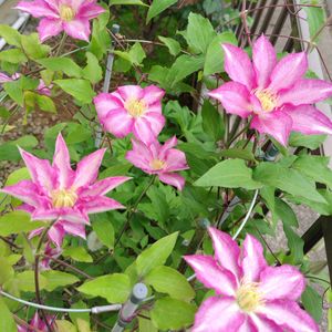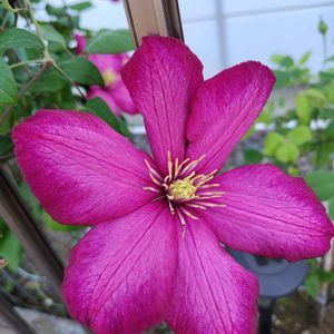 おはようございます🎵 クレマチス 星のタンゴ💃 フォロワーさんの所で見かけて😅やっぱ一緒だった🤭ウレシイ🩷 昨年より遅い開花ですが発色が綺麗でお気に入りです♥️ 花弁の中央がかすれた白が可愛いデス✨