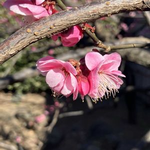 池上梅園に行きました 梅 3種 みどりのまとめ、作ってみたので、よろしければご覧下さい😊 1.座論梅 2つずつ咲くそうです 実になったときに、まるで2人の坊主が頭を突き合わせ議論してるように見えるので座論梅 2. 花香実 はなかみ ひとつひとつの花が大きめの、薄ピンクがキレイな梅 3.黒雲 ちょっとグレーが入った赤が素敵な色 私の好みの色🩶