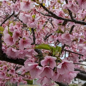 🌸河津桜🌸 近所の河津桜 もう葉が出始めて いました☺️ 次は いよいよ 染井吉野だ〜 待ち遠しいですね🤗