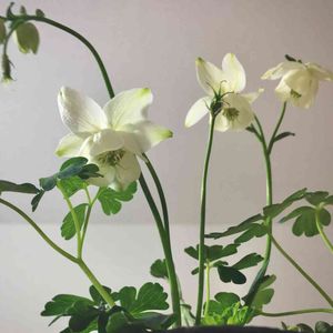 白い風鈴オダマキをお迎えしました☺️ 可憐ですー🤍🤍 メモ🗒 ガクの後ろのトンガリ、距(キョ)があるのがオダマキ。 キョが無いのが風鈴オダマキ。