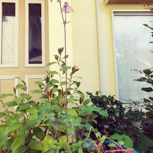 4/22のpicの風鈴オダマキさん。 まだ少し早かったのね……😅 今日 仕事から帰って見たら ここまで開いてました🥴 後ろに写ってるのは 今日のお花🌸の ローズマリー