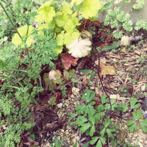おはようございます。さしもの西日本暖地も寒い朝です。1月の寒波のときにも降らなかった雪が今回は降り、オリカナガーデンにもほんのうっすら雪化粧がありました。朝日で溶けるほどの僅かな量ですけれどね。東北の方々、根雪ま白き地域の方々の不安やご苦労にはまるで及びませんけれど。 そんなオリカナガーデンですが、なんとオダマキさんが花蕾をあげていらっしゃるではないですか! たしか先月、ちょっとモリモリしすぎたから相当小さく切り戻したはずなんですがいつの間にか元に近いサイズまで戻ってますし。今2月よ!? と二度見しましたね。 それと、後背に写り込んでるヒューケラ、なんかそういう和菓子あるよねって思うとよだれが出てきてしまいましたぞ🤤 (オイ前半の真面目なコメント台無しやぞ)