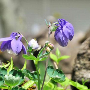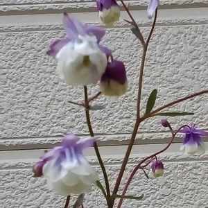 きょうのお花「オダマキ」 風鈴オダマキ、といいます。 昨年5月?に投稿しました。 直径2㎝ほどの 可愛らしく風に揺れる感じが魅力的💓 咲いてる鉢をget 地植えにしたものです。