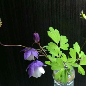 折れてしまった風鈴オダマキと伸び過ぎのビオラ、花瓶で楽しみます!