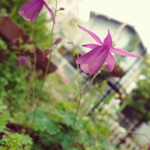 こちらは今咲いています。5月頃、HCでこの紫と先ほどのピンクと白の三色を売っていて、何色にしようかと苗を吟味していたら、一鉢だけ紫とピンクの二色植わっているのが♡迷わずそれを買ってきました。久しぶりの風鈴オダマキはやっぱり小さくて可愛い✨