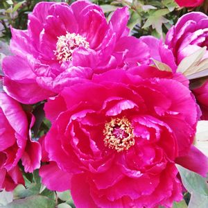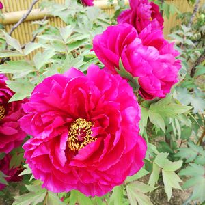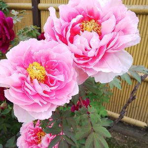 ボタン(牡丹)「島津紅」品種の濃いピンクの花 2025-04-16