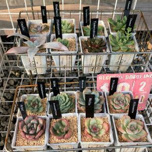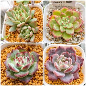 10/2にお迎えした多肉さん🪴 右上のマリアが今までで1番高額苗😇 (って言っても¥600だけど←) そろそろ多肉2年生になるので進級祝いで🥺 右下のムチムチなエケベリアさん 札落ちらしくて名無しさんだそうで。。 わかる方教えてくださーい💦