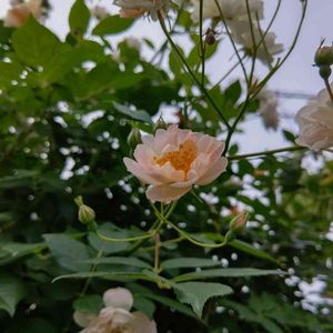 トレジャー トローブ 淡い杏色~ピンク~白と咲き進んむかわぃぃバラです。 高く伸びて写真うまく撮れませんでした( 。>﹏<。)~♡