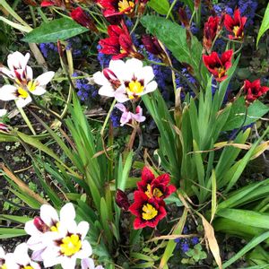 こんにちは♥︎︎∗︎*゚ 雨になりそうです🌧☔️ スパラキシス 赤と白 どんどん増えて あちこちに咲いてます♪ アジュガも増えてきました*・゚ (≧︎∀︎≦︎)゚・* 少し 整理して 綺麗に しなくては デス😅💦