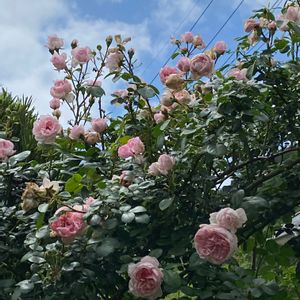 ォハョ~ 16℃/29℃ ☀️ 薔薇 💗 シンデレラ 🏰 ピンチアウトしないで下さいね~ 雨でぉ花も蕾も傷んでます😅 あ~電線がジャマ~…w