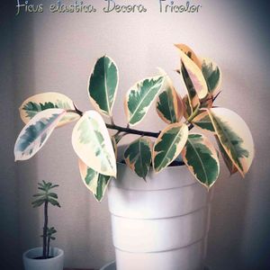 Ficus elastica Decora Tricolor☀️✨ ゴムの木も大きな鉢に植え替え😆👍✨ 次は枝を曲げよう(*´˘`*)♡