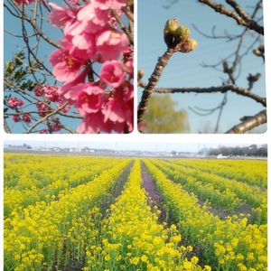 春ですね~🌸💛💕🎶 カンヒザクラ ソメイヨシノの蕾(開花までもう少しでしょうか) 菜の花畑