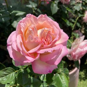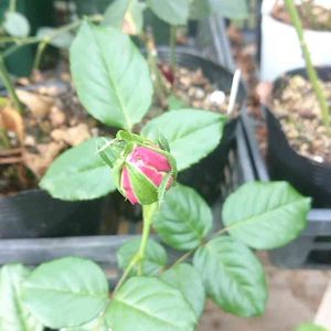冬剪定した枝の挿し木苗🌹 元気に大きくなっています✨ ひとつだけ、咲かせちゃいます😆