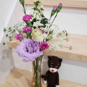 💐お花の定期便💐 💐ガーベラ(ピンク) ☆花言葉『崇高な愛』『思いやり』 💐スプレーカーネーション ☆花言葉『純粋な愛情』『あなたを熱愛します』 『清らかな慕情』『熱心』『感動』他… 💐スターチス ☆花言葉『変わらぬ心』『永遠に変わらない』『上品』 💐スプレーマム ☆花言葉『清らかな愛』『高潔』 花言葉を通して、恋愛の関係なお花ですね(〃▽︎〃) なんか〜恥ずかしくなって来た😆💦