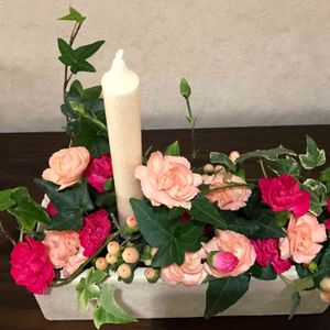 以前のアレンジをコンパクトに リニューアルしました。 カゴアレンジ 🌿🌸 ベランダで撮影しました。