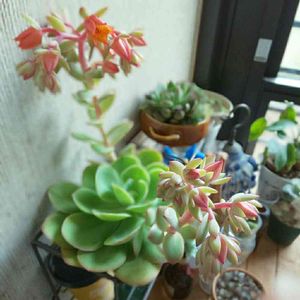 おはようございます☁️ 先日寄せた多肉さん🌵 こちらは根付いているので外に出そうか思案中🤨まだ早いかな、、んー🤔