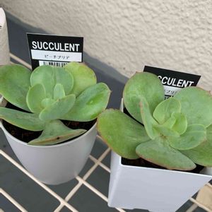 おはようございます☀ 昨日久しぶりに100均寄って持っていない新しい多肉買いました。 ピーチプリデ! ルエラに似ているけどどんなになるんかな?😁