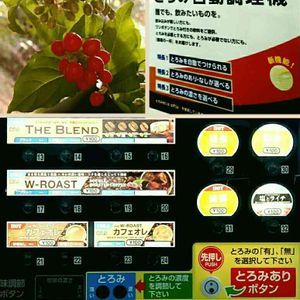 先日、ミツケタ ゴイス自販😆✨ 誤嚥防止のトロ味調節付❗ 世界初❗ 試しにコーヒー☕トロ味付きmax deオーダー😤 トロ味強だったケド コーヒーの風味そのままde😮🌟 ゴイス🗻✨🗾日本🎌😆✨ 感動し過ぎて お釣り取るのを忘れそうになった・・・💦 ジュズサンゴだったのネ😆 回答cheersデシタ🍀