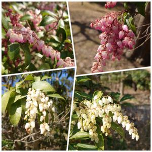 馬酔木(アセビ)の蕾が 膨らんできました! 去年の夏から蕾を用意していて、やっと白く大きくなって来ました💖 もうすぐですね! ✱下のは、勿忘草の白とピンク🤩 咲いたのを去年の秋に購入後、可愛く少しづつ咲いてます🤭