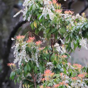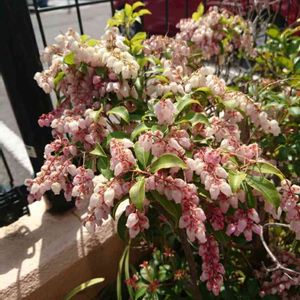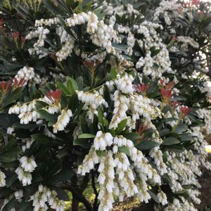 アセビちゃん💕 赤い新芽と白いお花がきれいです👍