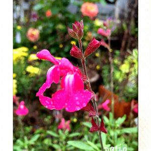 オレンジのような真紅のような可愛い色。 チェリーセージのように大きく育てたい!