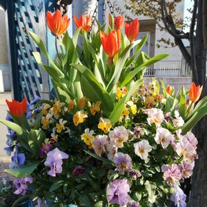 ラーメン屋さんの前に、こちらも咲いていました✨✨✨ このラーメン屋さん、ご自宅で育てて見頃になるとこちらに持って来て、目を楽しませてくれます。 新しいお花が来たら、また撮りたいと思います。楽しみ💕 先程のがラナンキュラスで、 こちらはビオラですよね?