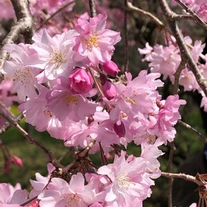 日差しを浴びて☀️ 枝垂れ桜、ほぼ満開😁 ちょっぴり蕾も❣️🌸 🏷金曜日の蕾たち 🏷桜リレー♬