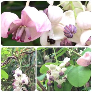 あなた誰? お出掛け先の里道で。 名前がわかりません。 @真理さんに アケビと教えていただきました。 ありがとうございました‼️ ツルで、花も可愛いかったです。